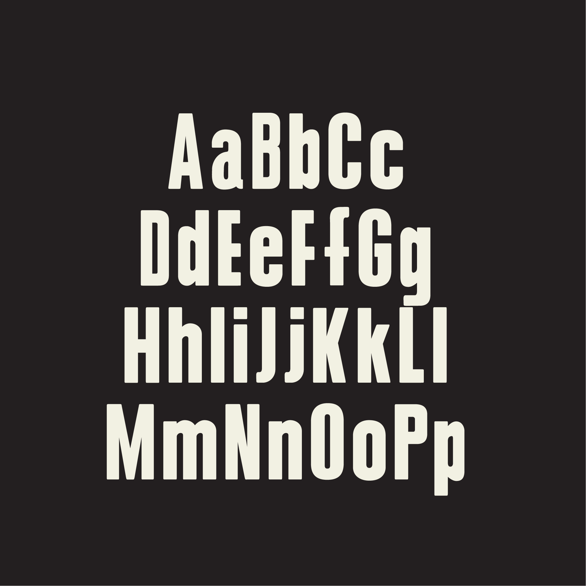 Three condensed weights have been developed, Light, Regular and Bold. Letzte has been extensively developed to function beyond its orginal letter blocks